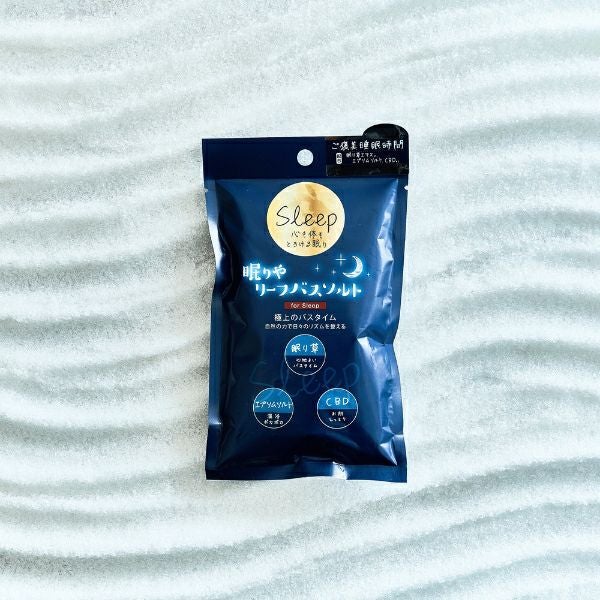 エプソムソルト(硫酸Mg)をベースに、クワンソウエキス(眠り草)とカンナビジオール(CBD)を配合したバスソルトです。