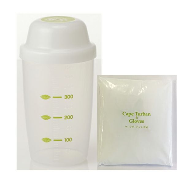 ヘナ染めをする際に、便利なシェイカーとケープターバン、手袋のセットです。