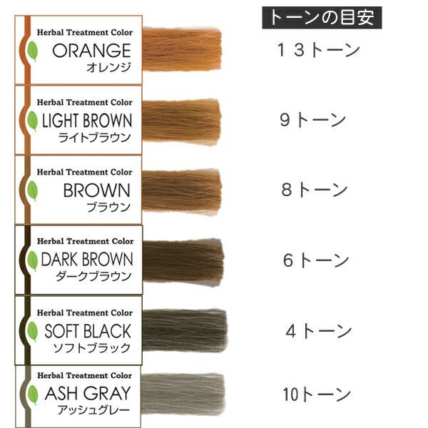 ●オレンジは、白髪がオレンジ色に染まりますが、黒髪には色は入りません。傷んだ髪は、やや明るくなることがあります。