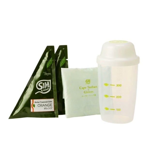 白髪が気になる、でも合成化学染料は使いたくない、そんな方にピッタリの天然ハーブの白髪染め&トリートメントです。使うほどに髪にハリコシ、ツヤUP!お風呂につかりながら、簡単に髪のエイジングケアができます。 エコサート認証を受けたオーガニックヘナをはじめ、インディゴ(ナンバンアイ葉)、アーマラキー(アムラ)、ウコン、甘草、ローズマリーなど、地肌や髪を健やかに保つ厳選したハーブを独自の配合でブレンドした使い切り25gパウチが2個入っています。初めてヘナ染めする方に便利なシェイカーとケープターバン、手袋が入っています。シェイカーにお湯とパウチのハーブを入れて、よく振ったらペースト完成。簡単にヘナ染めができちゃいます。 インド国内でも大手の工場にてハーブの選定から充填までを一貫して行っています。毎年品質の良いハーブを買い付け、枝や砂などを丁寧に除去し粉砕まで行っています。染色成分であるヘナの葉に含まれるローソニアとインディゴに含まれるインジカンは含有率が高いものを配合しておりますので、しっかりと発色しトリートメント効果も期待できます。 ★染まりにくい方は2度染めがお勧めです★ ①オレンジを白髪の部分を中心に塗布します。 ②約30分放置し、その後お湯で流します。 ③タオルドライ後、ブラウン~ソフトブラック(希望色)を塗布します。 ④30分以上放置後、お湯で流します。 オレンジを最初に塗布することで、そのあとの色がより濃く発色しやすくなります。 *ヘナについて詳しく知りたい方はここをクリック *シェイカーとケープターバンの使い方動画を公開しております。