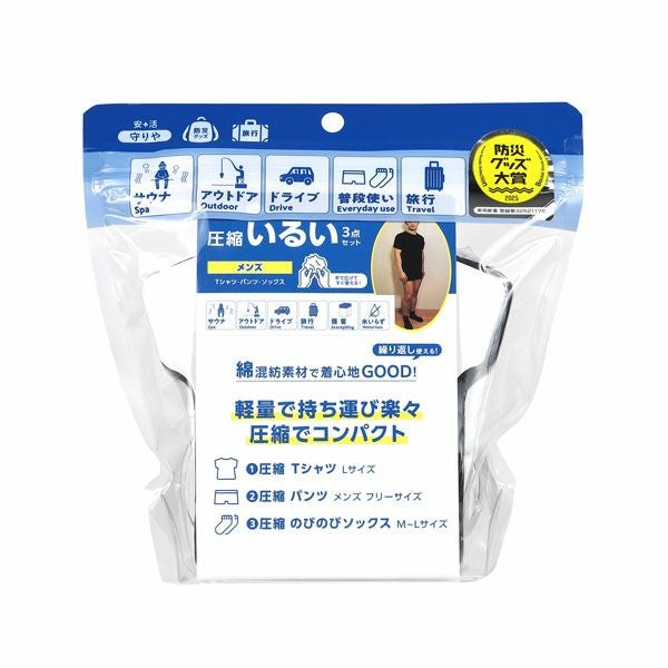 他の画像を見る New 『NHKおはよう日本』で紹介されました 圧縮いるい&タオル トラベル3点セット(メンズ) 販売価格 ¥ 1,100 税込 ※ただいまご注文が殺到しており、お届けまでに少しお時間をいただく場合がございます。何卒ご了承ください。 カートに入れる お気に入りに登録する