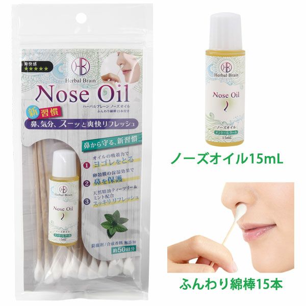 ノーズケア用の「ノーズオイル」は卵殻膜とオイルの力で鼻を保護し、ペパーミントですっきり鼻の乾燥を防ぎ保湿します。綿球が大きめの専用綿棒15本付き。持運びやすいチャック付きのOP袋入り。