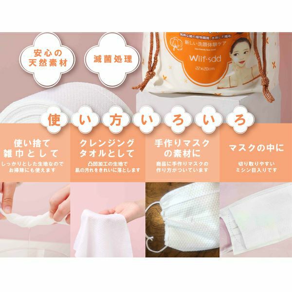 メイク落とし、マスクの中敷きに、マルチタオルとしてもご使用いただけます。