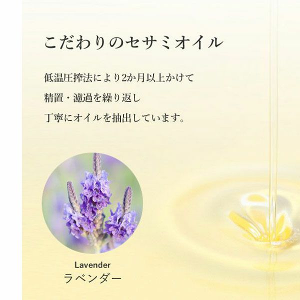 化学薬品を一切使わない圧搾法で、厳選した良質のゴマを絞って作られた化粧用オイルです。